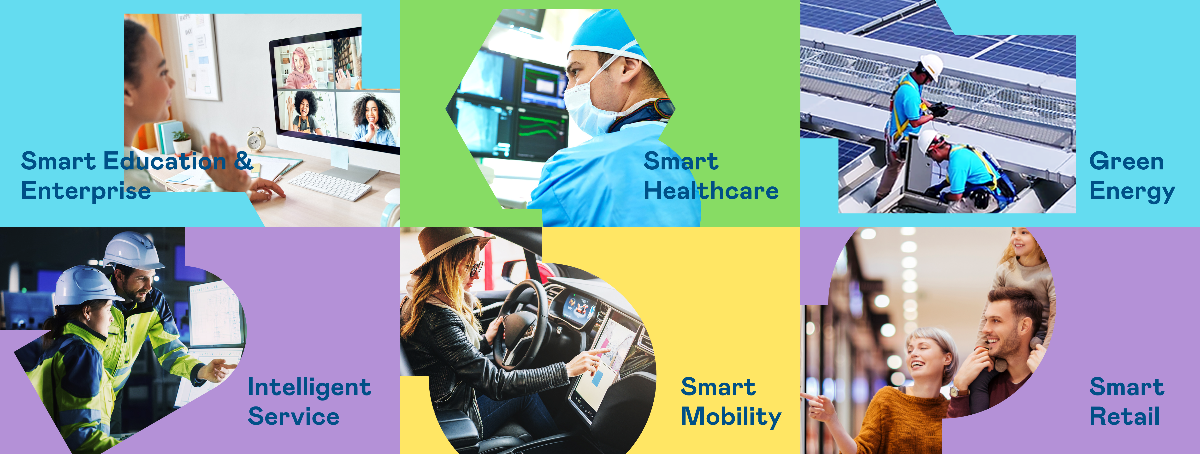 从稳重、信赖的六合联盟蓝开创新色彩,注入象征智慧蓝、活力黄、创新紫、永续绿的品牌色及动态多变的几何图形,呼应不设限的「Possibilities」精神,代表多元的专业技术及领域,在碰撞中相互触动、融合、延伸,持续激荡出更多新的可能性。